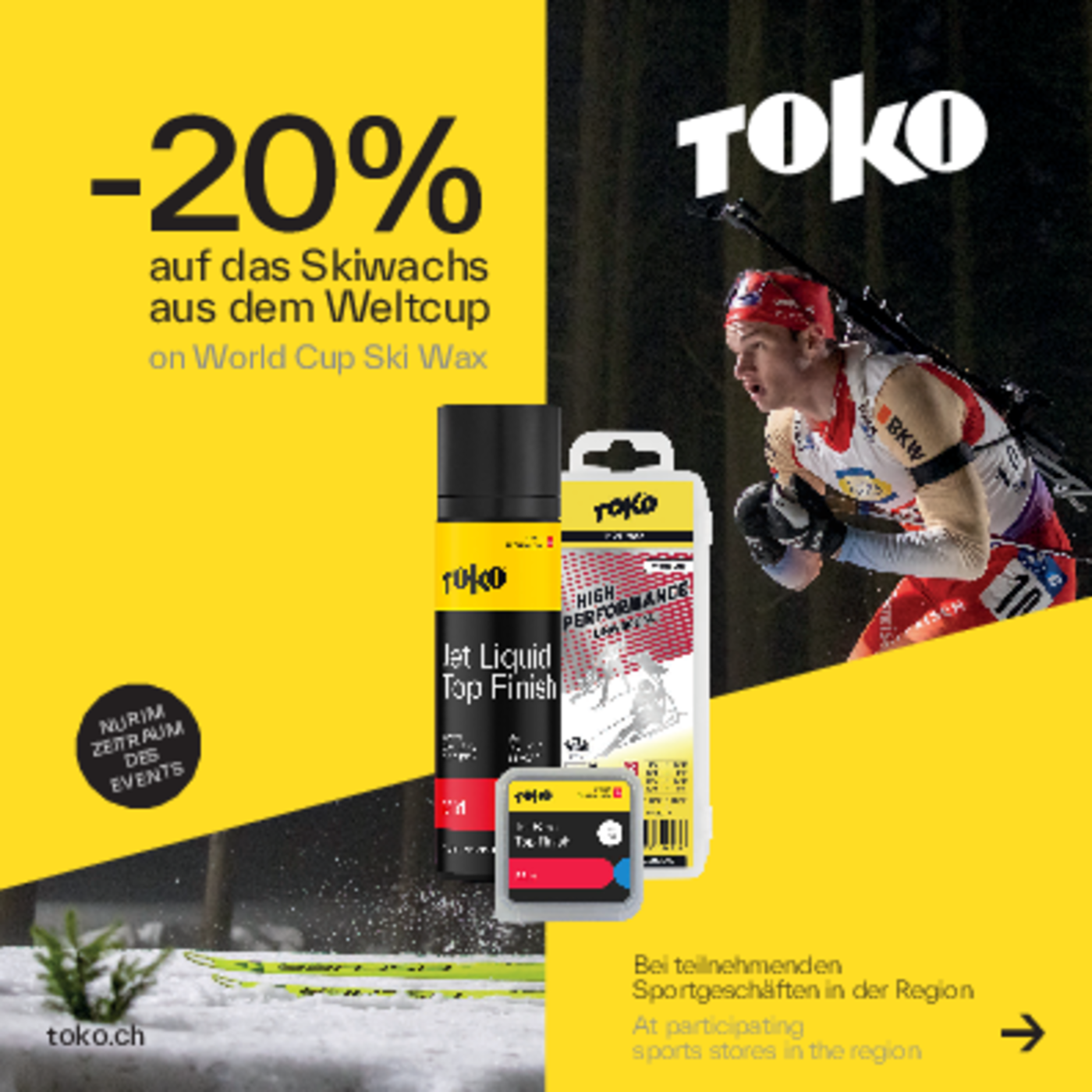 Nur während des Events bieten ausgewählte Händler in der Region Top-Deals auf Toko Jet Top Finish, High Performance-Produkte an. Die perfekte Gelegenheit, dein Material rennfertig zu machen – direkt vor Ort. Welche Händler an der Aktion teilnehmen, findest du auf dieser Webseite oder erfährst du am Toko Stand.