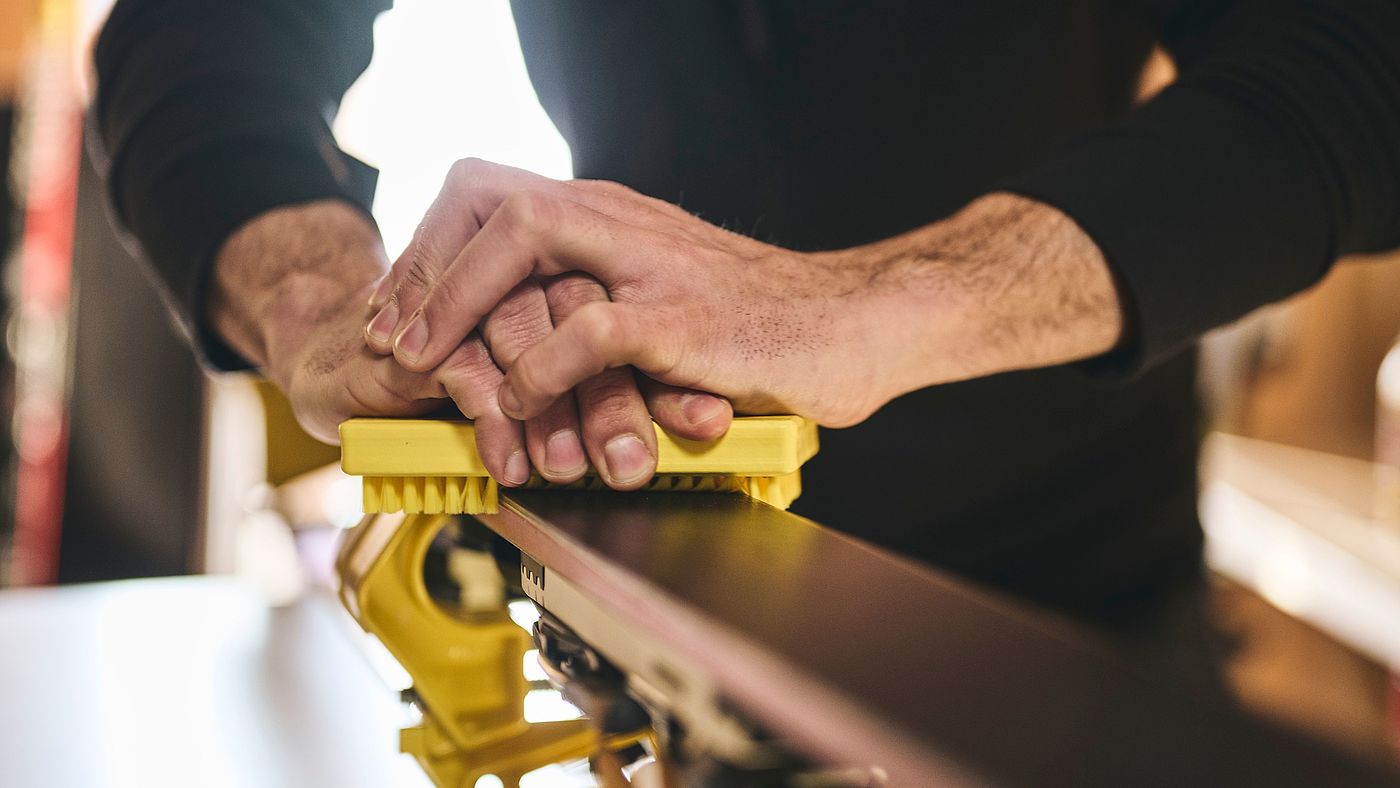 1. Prétraitement/nettoyage avec du fart chaud : Selon l'état de la semelle, nous recommandons un prétraitement/nettoyage afin de préparer le ski de manière optimale à l'application de la Liquid Paraffin.